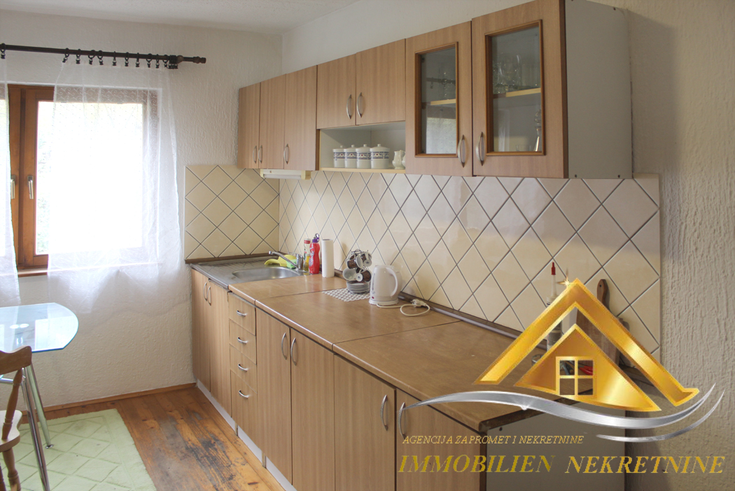 Kuća se prodaje djelimično namještena. U kući ostaje: sećija, stol, peč na drva, plazma tv, klima u dnevnoj sobi, zatim, dva kauča i veliki ormar u spavaćoj sobi, komplet kuhinja, el.šporet, trpezarijski stol i stolice, ormar u hodniku te kupatilo sa svim elementima. koje je renovirano prije nekoliko godina.