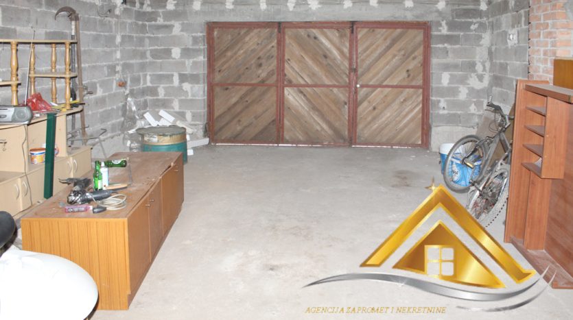 Prizemlje se sastoji od većeg predulaza. koje je vertikalnom komunikacijom (drvenim stepenicama) povezano sa spratom kuće. Iz predulaza se također ulazi u podrumski prostor a iz podruma u veliku garažu, u koju je moguć ulaz i sa prilaznog puta kroz velika garažna vrata.
