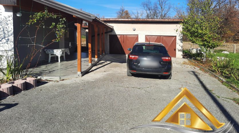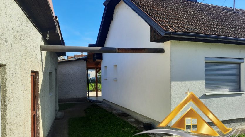 Iza stambenog objekta se nalaze i dva odvojena pomoćna objekta. Jedan pomoćni objekat je dimenzija cca.7 x 5 m i čine ga dvije odvojene i potpuno funkcionalne garaže, kapaciteta 2 vozila te vanjski wc. Garaže su zatvorene metalnim garažnim vratima. Objekat je zidan blokovima i pokriven jednovodnim krovom sa crijepom kao krovnim pokrivačem.